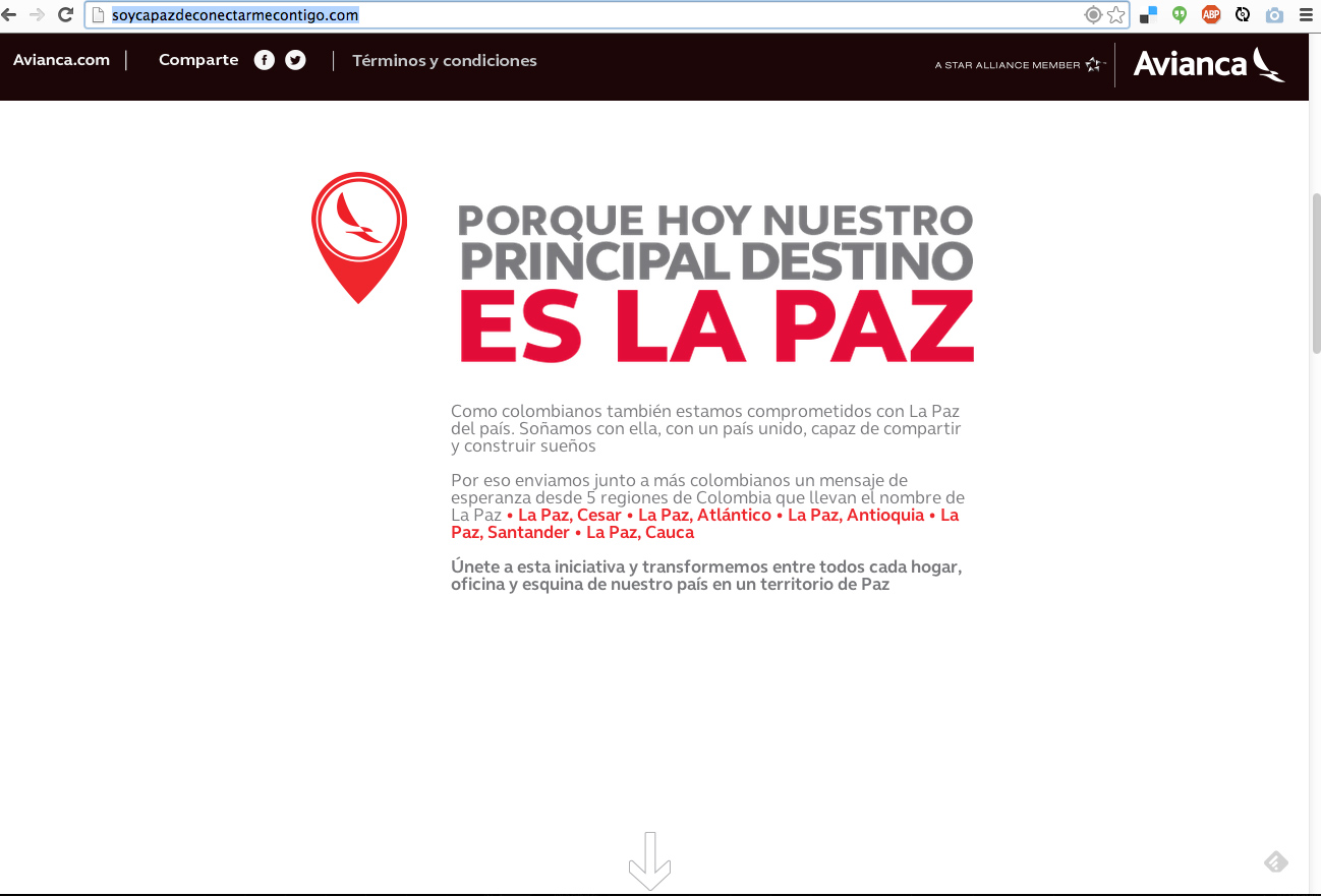La iniciativa “Soy capaz de conectarme contigo”,-parte de la campaña #soyCapaz-, organizada por la aerolínea colombiana Avianca invitaba a hacer un gesto de paz, de conexión, de compartir.