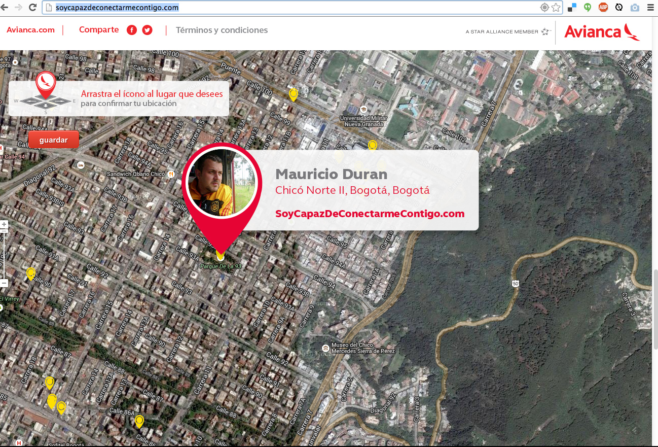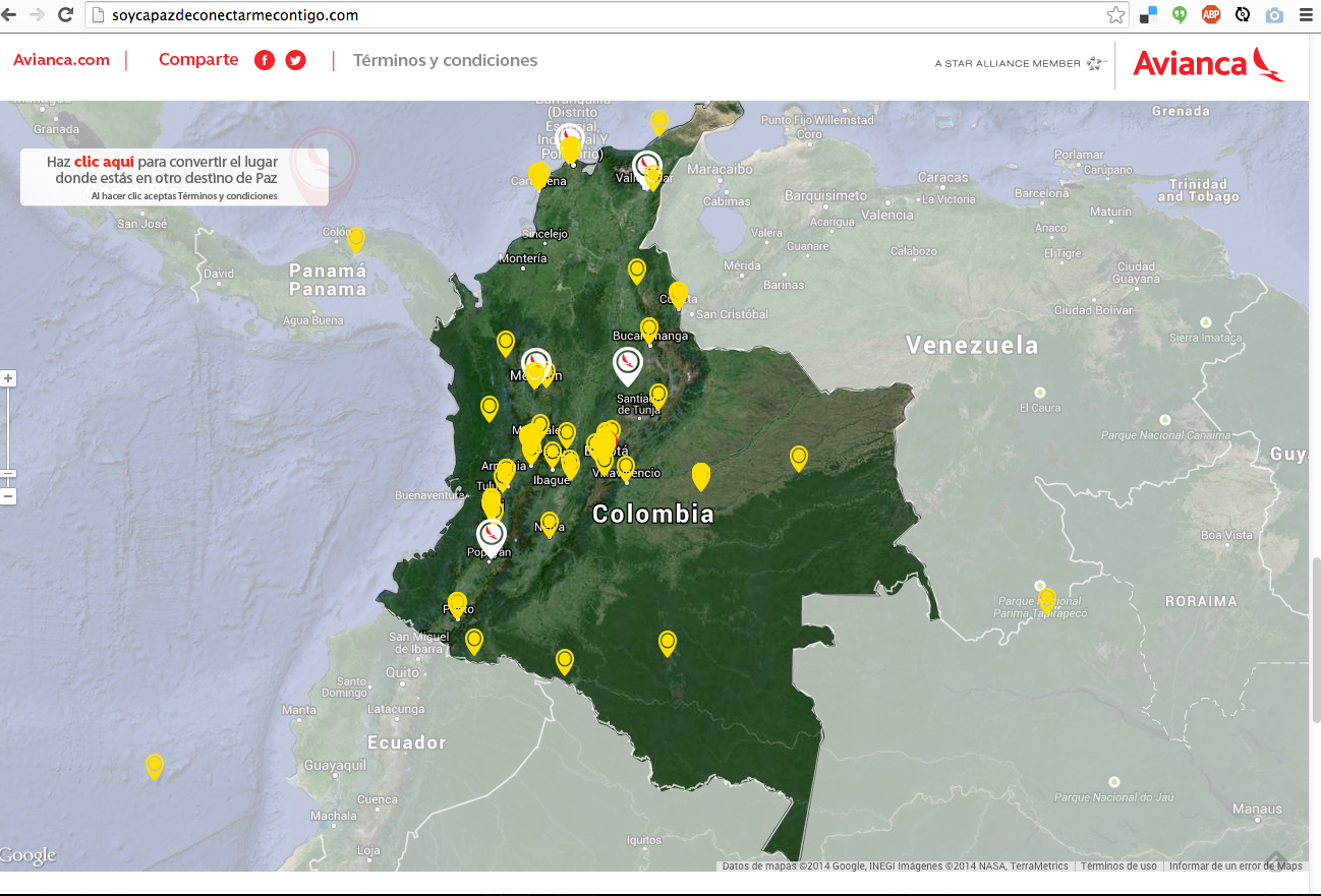 Al guardar la ubicación del usuario en un mapa, su nombre e imagen de perfil en Facebook podía ser vista por otros usuarios como muestra fidedigna de su deseo por la paz y el compartir en Colombia.