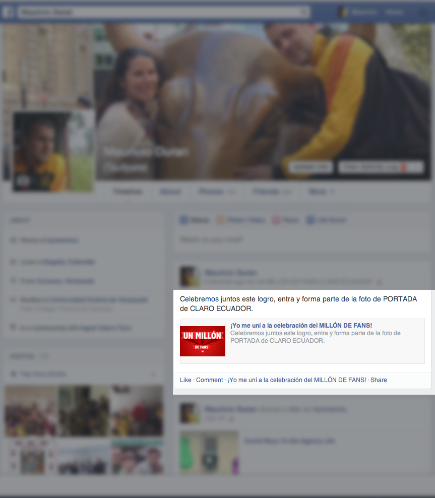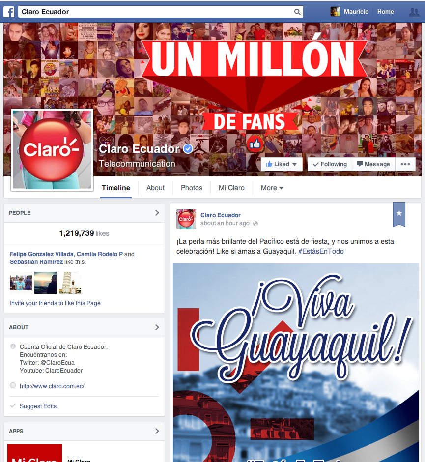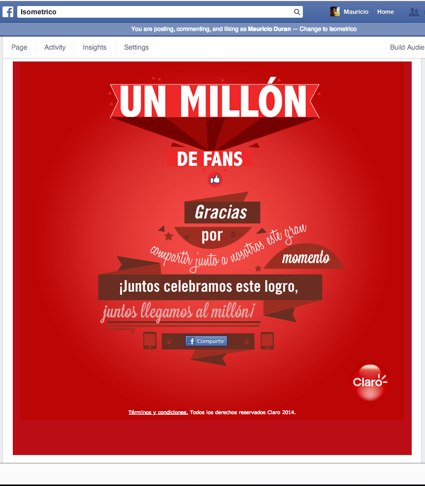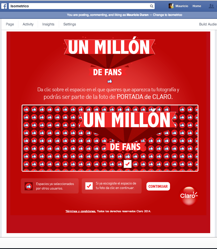 Isometrico desarrolló para la empresa de telecomunicaciones una aplicación que tras la autorización del usuario agregaba su foto de perfil a un collage – portada del fanpage de Claro Ecuador.