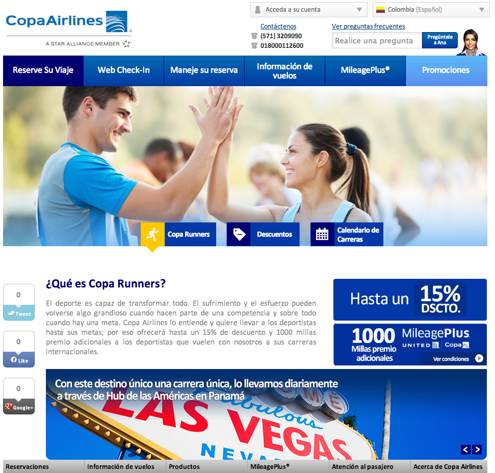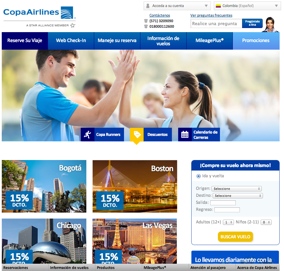 Isometrico diseñó y desarrolló un minisite integrado al sistema de reservas de Copa Airlines y correlacionó su inventario de vuelos con el calendario de los maratones como parte del contenido a seleccionar para la compra.