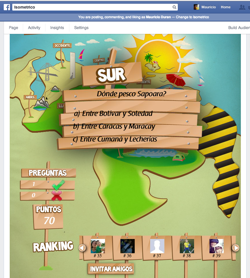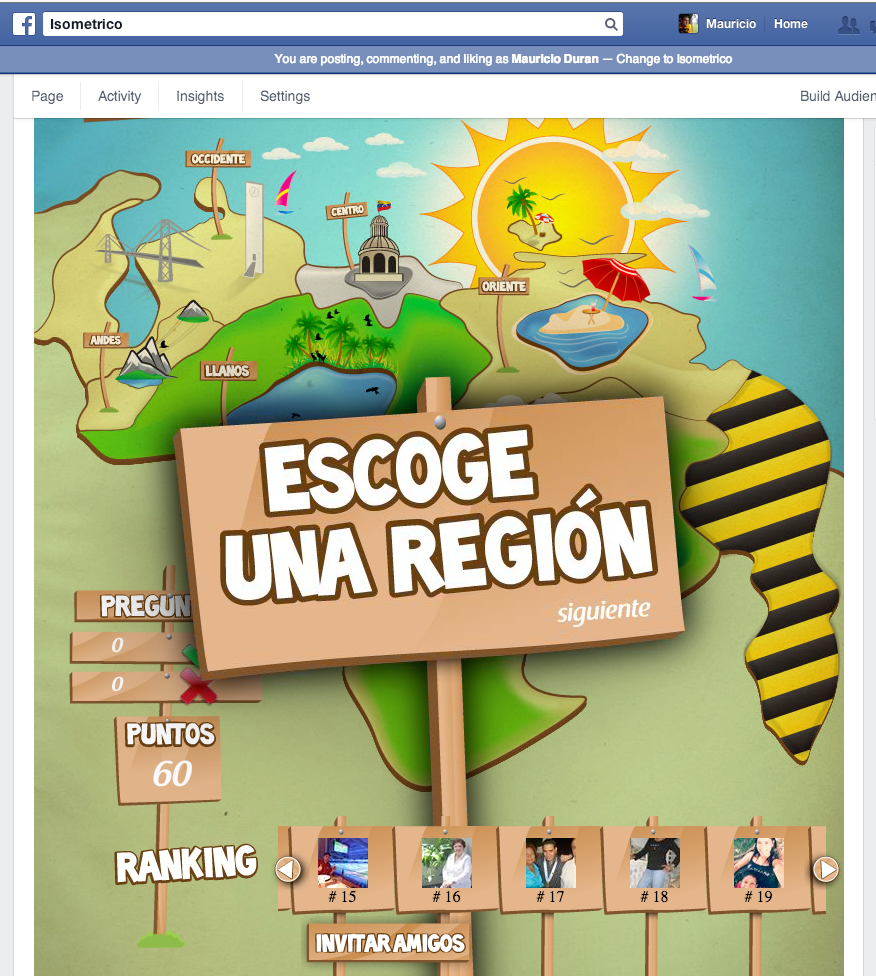 La propuesta fue de entretenimiento, una aplicación de juego con formato de trivia que exigía una alta participación del usuario, visitas diarias, ranking y publicación en muros. Así, el mapa de Venezuela fue dividido en regiones cuya selección exigía la respuesta de 10 preguntas diarias hasta alcanzar la meta final, estar en los primeros lugares de un ranking de premiados.